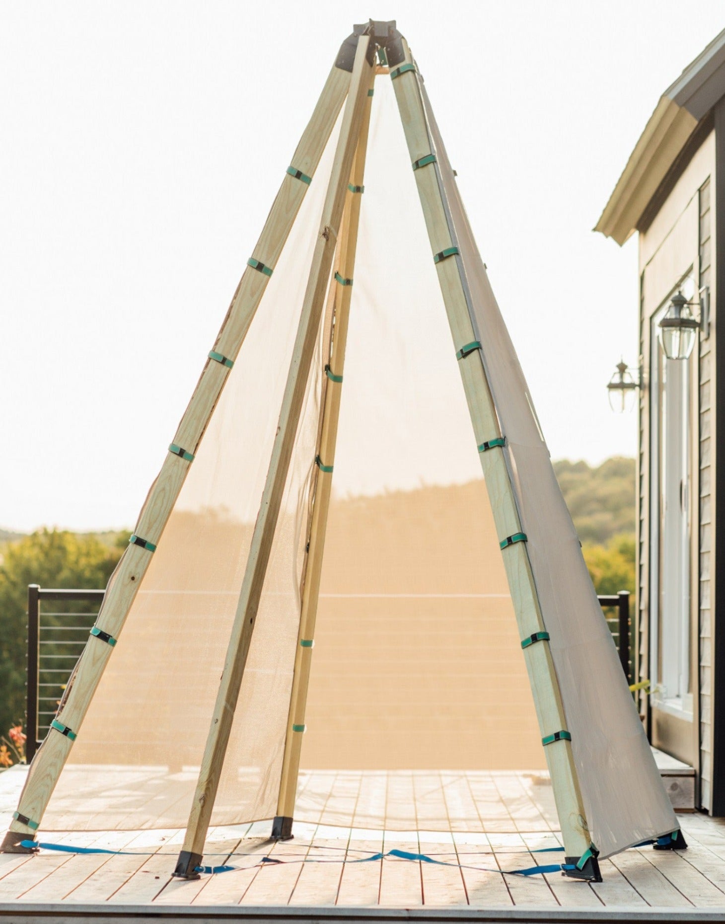 Enjoy UV protection and our exquisite solar LED lights. The Haven features a central star hub for effortless attachment of hanging accessories, eliminating the need for staking into the ground.