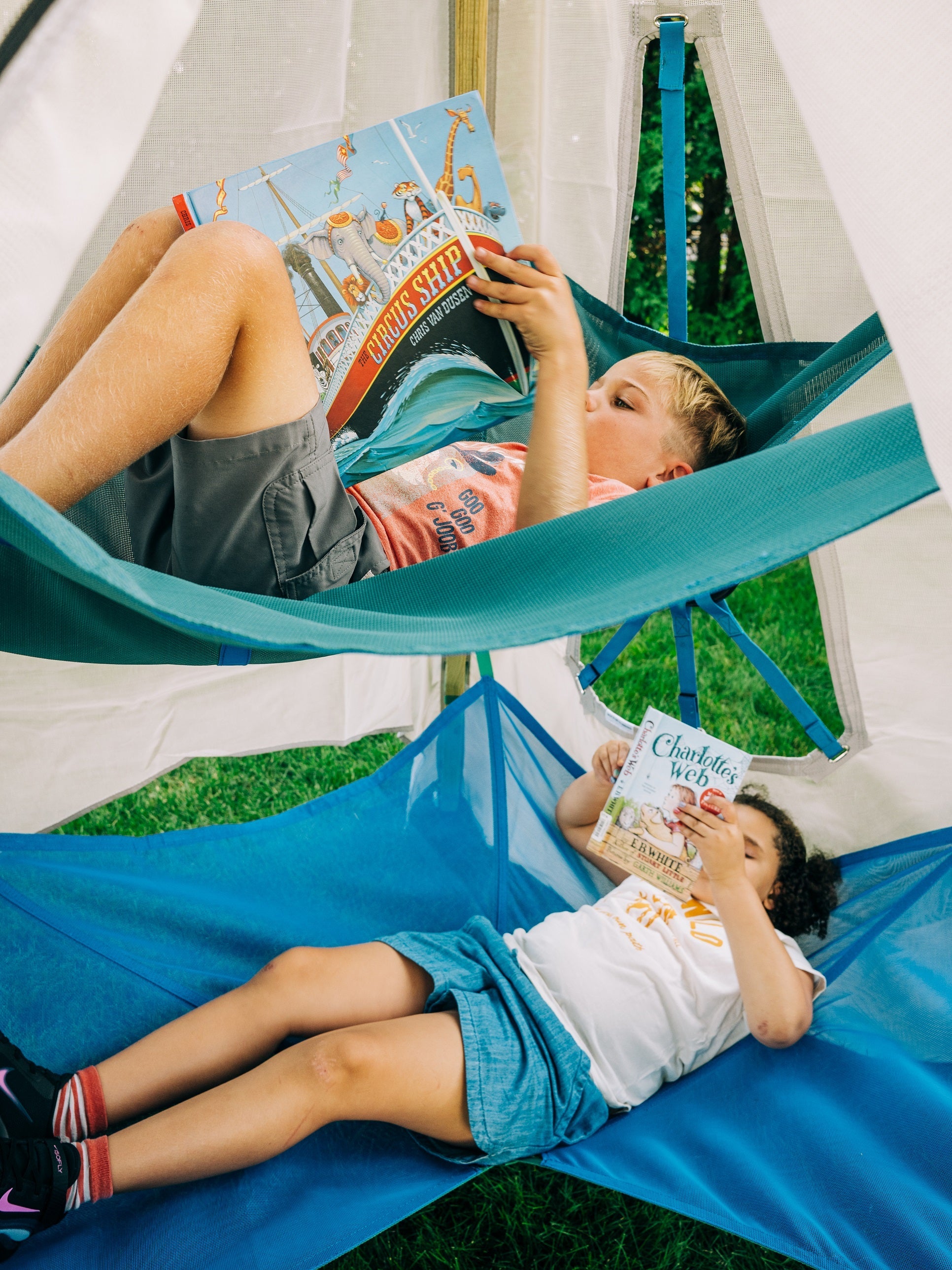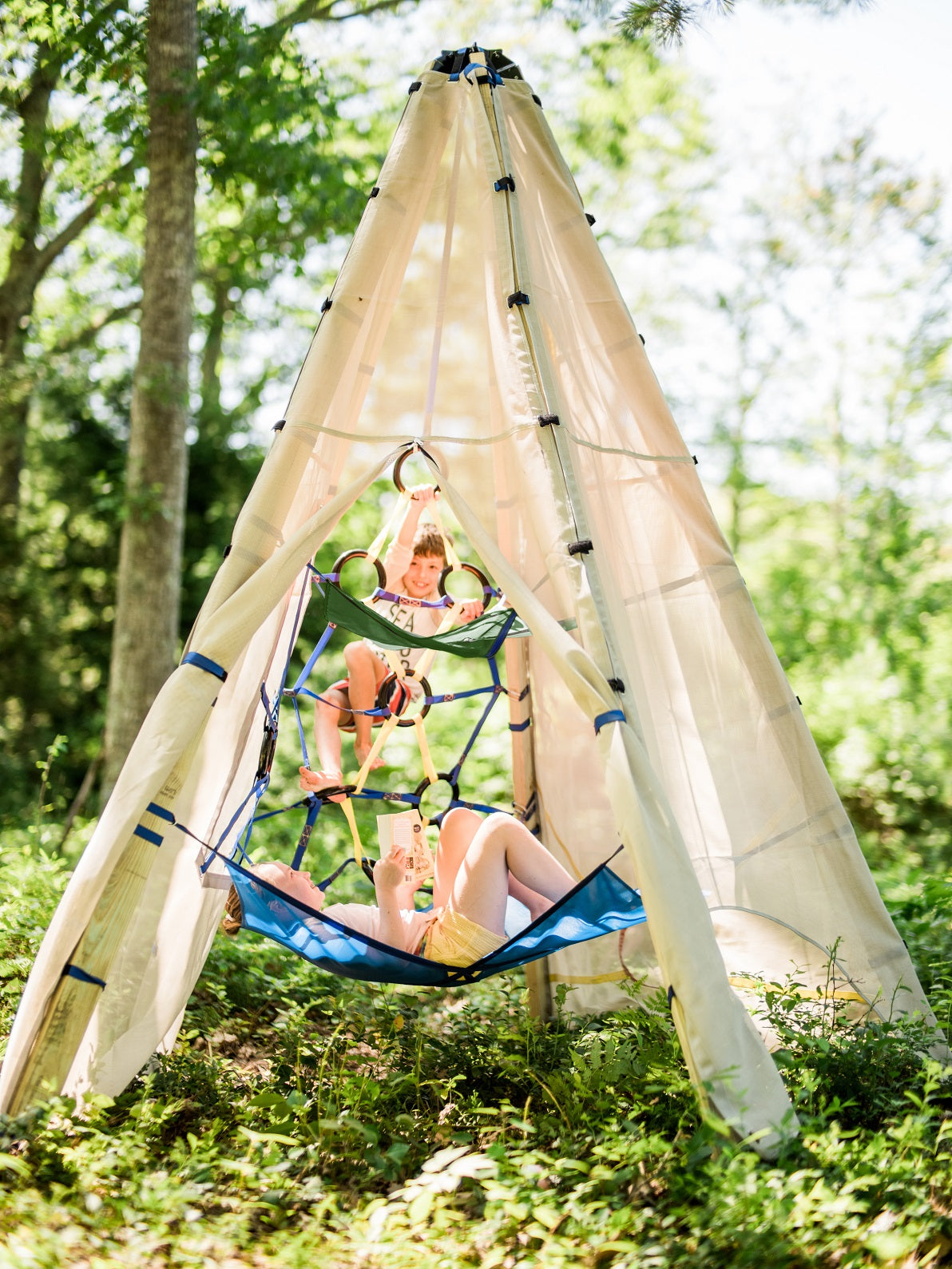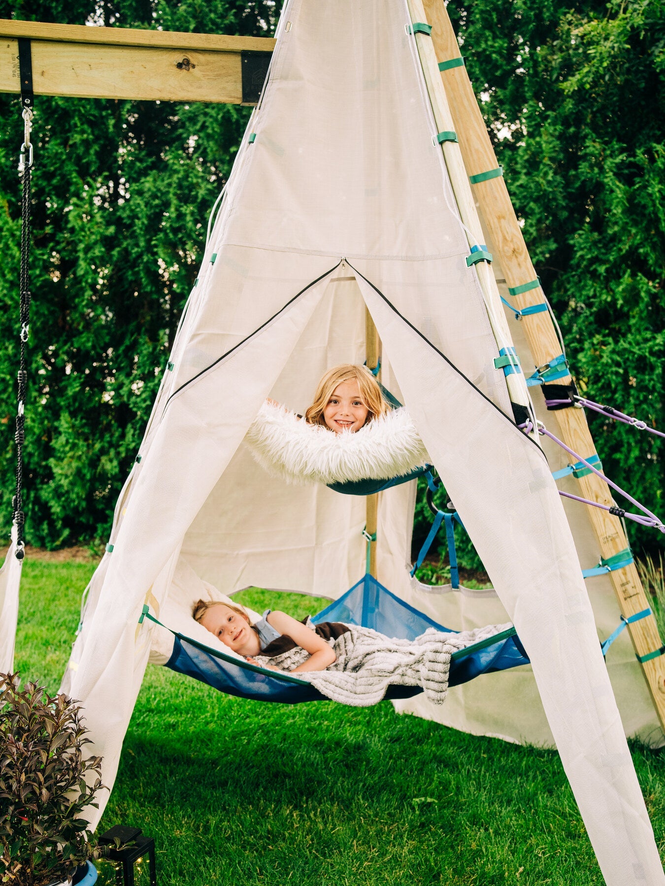 It includes five stainless steel safety carabiners and features double box stitching, just like the original. The Next Level can support weights of up to 250 lbs (113 kg). While it has a smaller opening than our main platform for added safety, the hangout area is just as impressive.